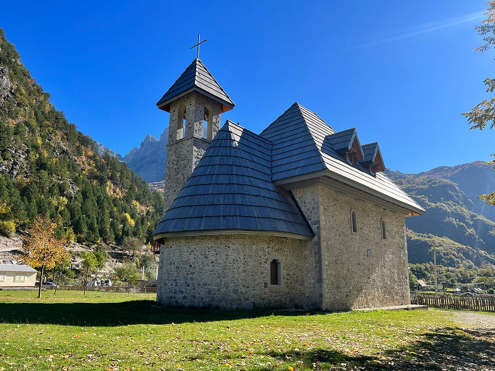Theth’s new road already replaced the infamous track that once required a 4x4 and Albanian perseverance. Despite the uptick in visitors, Theth is still a place where the quiet wins. Guest accommodations in Theth are almost entirely family-run guesthouses rather than hotels Breakfasts are made of yogurt thick enough to stand a spoon in, honey from the hives just behind the guesthouse, and cheese pulled from the dairy room that morning. Villagers still walk the valley floor with their cows at dusk. Church bells still echo from the photogenic white stone church that has become Theth’s postcard image.