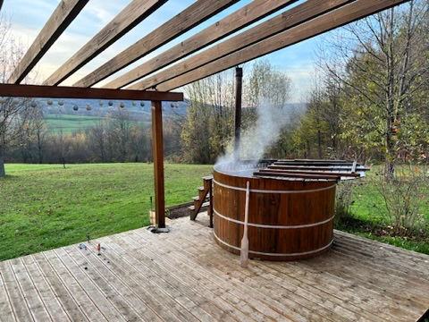 Hot tub with wood-burning heater